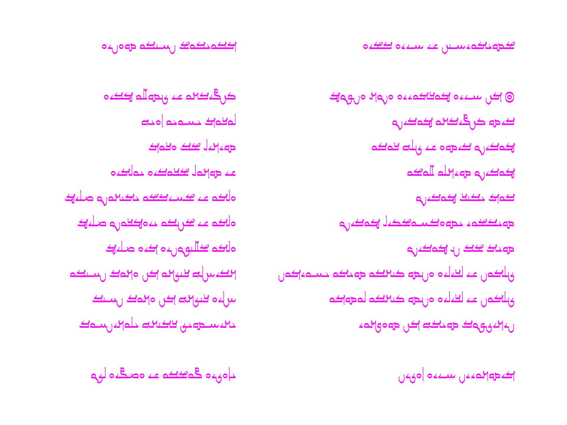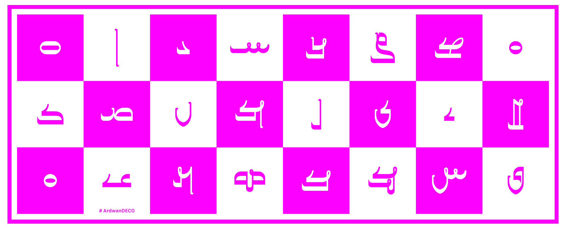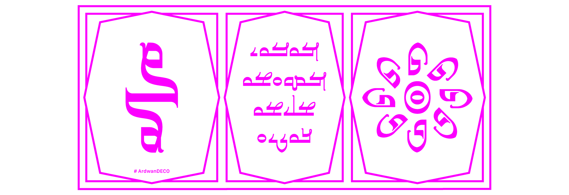 Ardwan Deco was created from the French punch letters in 1874 under the supervision of Professor Julius Euting. The font represents the evolution of the Mandaic script and captures its technical aspects. Ardwan Deco celebrates the beauty that emerged from Euting's technical failures by focusing on the decorative handwritten elements of Euting's punches and transforming them into contemporary design. While Ardwan Punch concentrated on the technical characteristics of Euting's work, Ardwan Deco highlighted the decorative handwritten additions. Together, these fonts offer a nuanced exploration of the history and aesthetics of Mandaic punch letters of the 19th century.