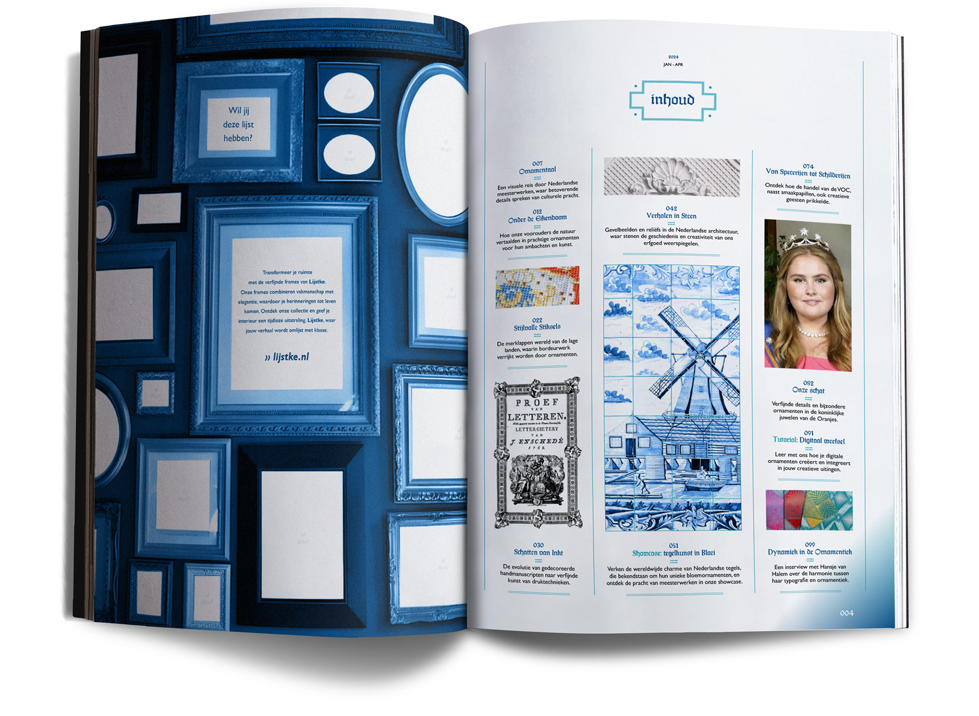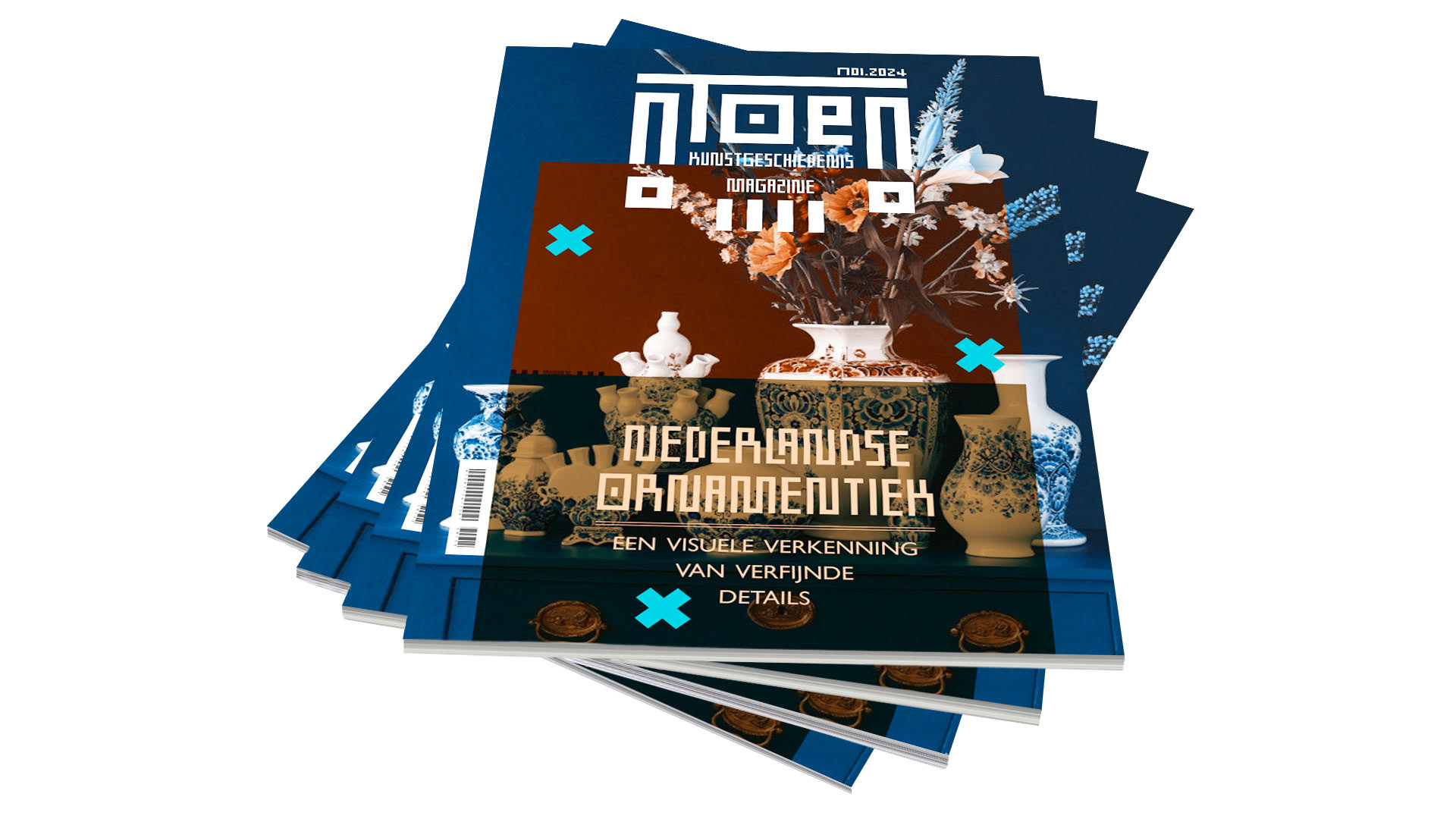 Experience the rich heritage of Dutch artistry with "nToen," a visually captivating art history magazine. The dynamic layout possibilities create an immersive journey for readers, captivating them with each page turn. The bespoke logo encapsulates the essence of historical expression, while the insightful grid offers a structured yet flexible framework for the diverse content within. The cover draws readers into the world of Dutch art through stunning Delfts Blue artefacts.
