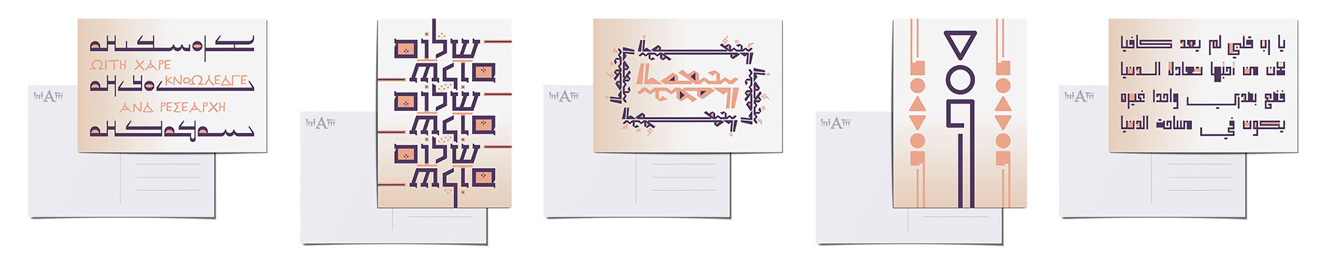 These postcards pay homage to the written word and the diverse cultures that have nurtured these scripts over centuries. The project is a visual ode to the beauty of the written word and the richness of each culture. Hebrew, for instance, communicates messages of peace through its straightforward typography, while Syriac script serves as a canvas where design meets timeless wisdom. Mandaic script exudes elegance and meticulous research, and Avestan script embodies the ethos of "Good Thoughts, Good Words, Good Deeds." With its poetic forms and emotional resonance, Arabic script expresses love and bridges cultural divides, while Yezidi script resonates with integrity and preserves the stories of a resilient culture.