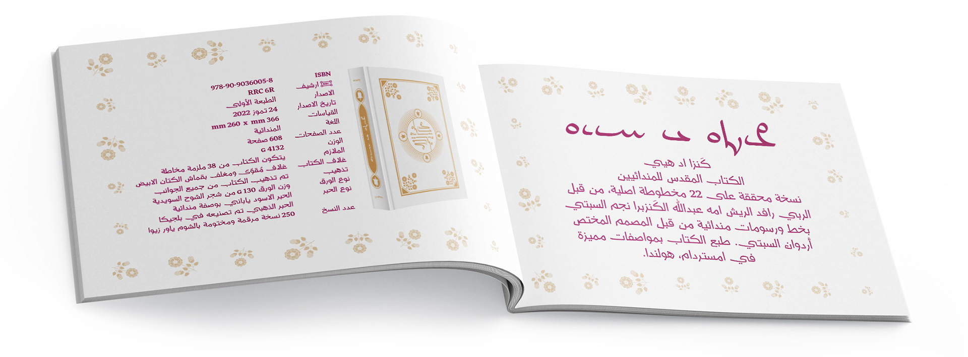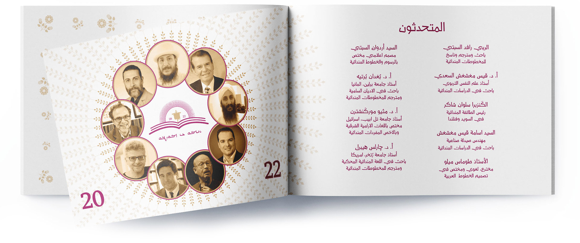 The brochure for the Mandaean Knowledge Day Symposium is a stunning example of how, in our modern time, tradition and modernity can seamlessly be integrated into the design. The materials that have been carefully curated take attendees through enlightening sessions while also reflecting the collaborative and innovative spirit of the event. The symposium's logo, designed with precision, serves as a visual anchor for the event, weaving together symbolic elements that embody the collaborative nature of the project. The program and speaker information are presented in a contemporary visual language, blending modern design principles with the timeless aesthetics of Mandaic script. The brochure also highlights the authorized edition of the Mandaean holy book, The Treasure of Life, underscoring the symposium's commitment to preserving Mandaean knowledge and cultural heritage. The brochure showcases the successful integration of design principles and cultural values.
